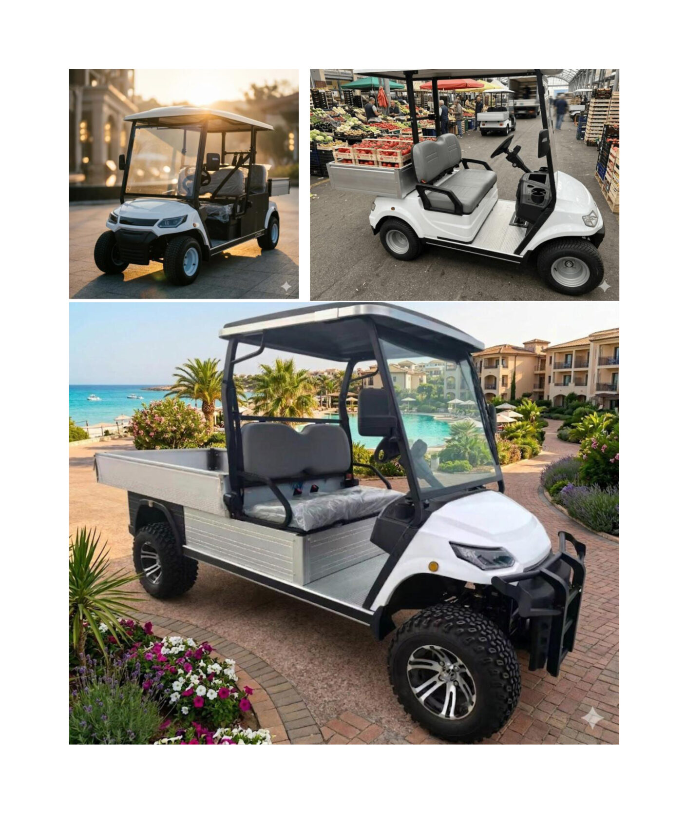 Les golfettes utilitaires électriques sont conçues pour offrir plus de confort d’utilisation et un déplacement plus rapide. Polyvalentes, elles sont utilisées dans les industries ou pour la maintenance dans les campings. Particulièrement robustes, les véhicules de golf utilitaires peuvent circuler facilement et régulièrement à l’extérieur.